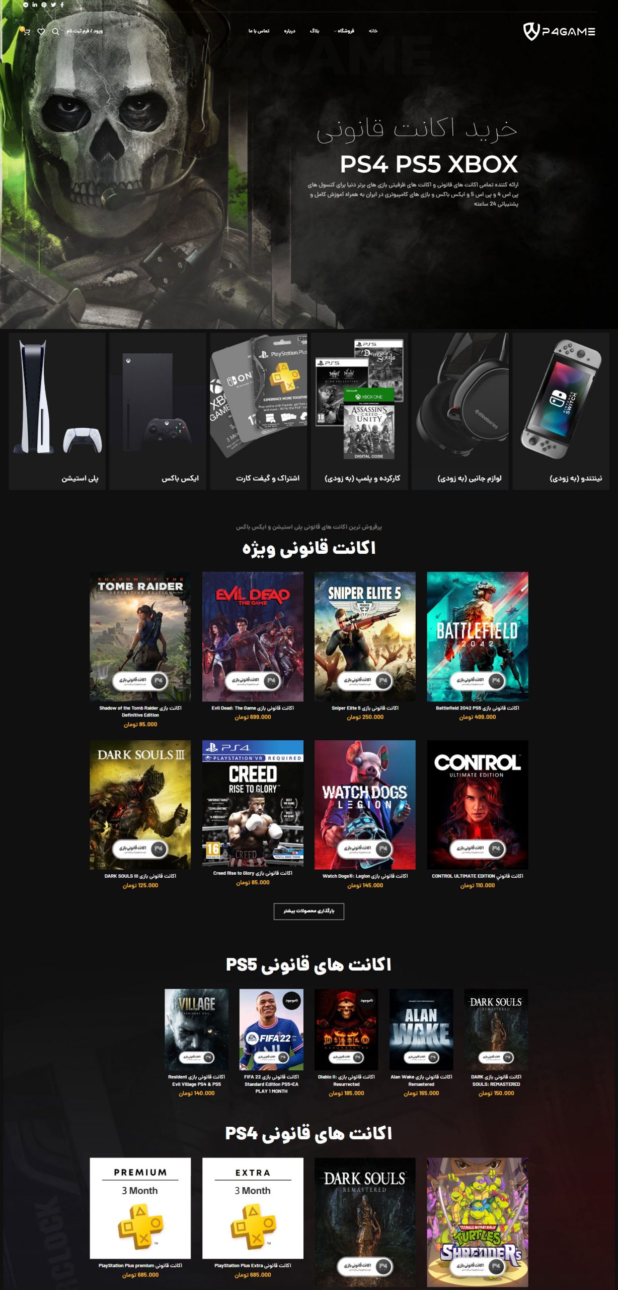 طراحی سایت فروشگاهی پی فور گیم